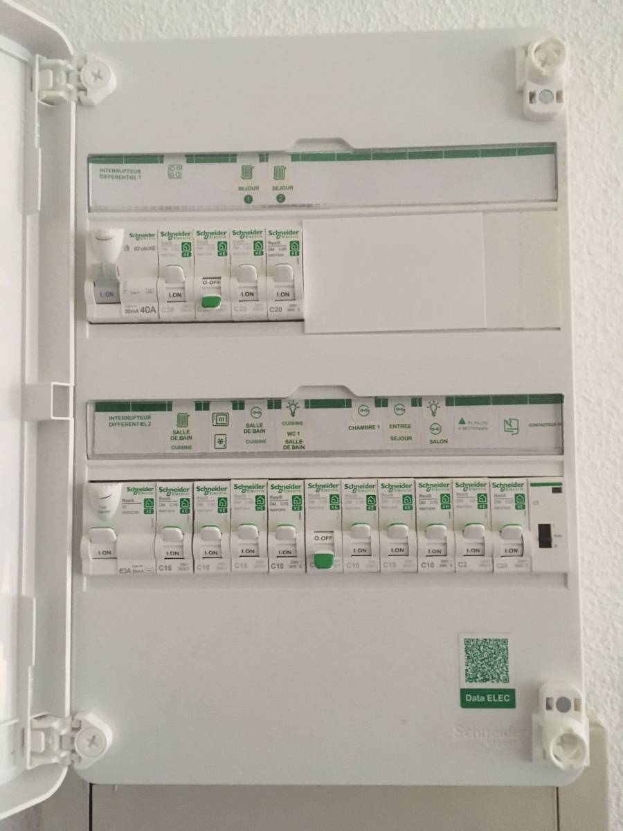 - Remplacement du tableau: Le vieux tableau est remplacé par un modèle neuf conforme à la norme NF C 15-100.